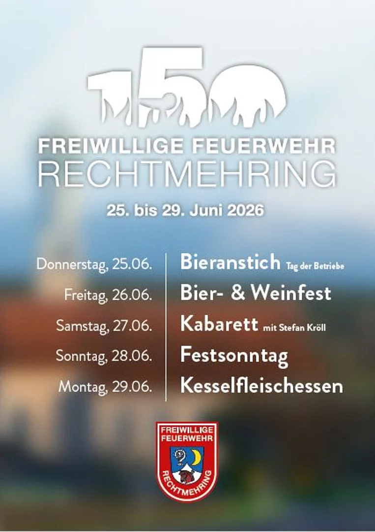 Die Freiwillige Feuerwehr Rechtmehring-Rosenberg e.V. lädt zum Gründungsjubiläum ein.