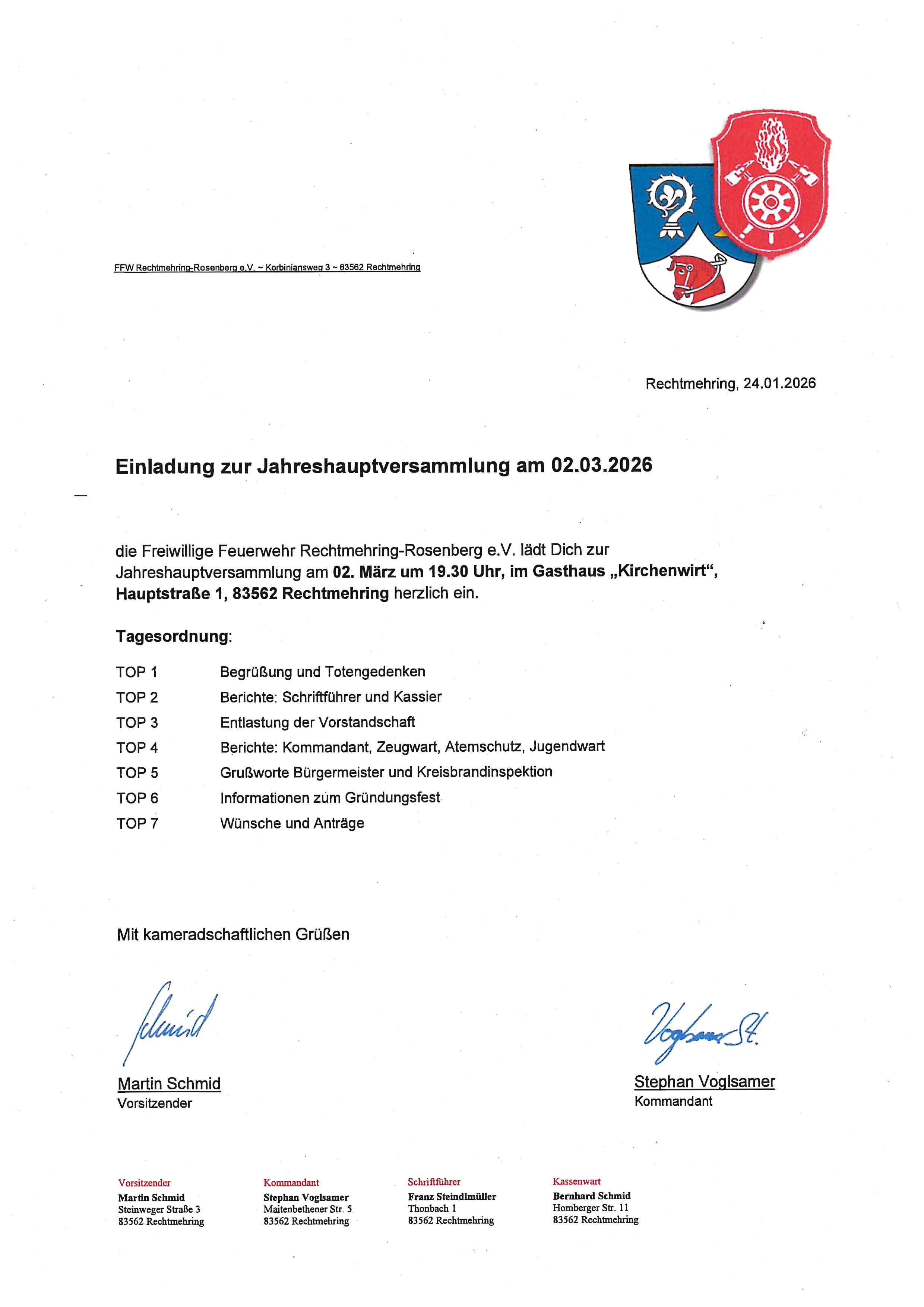 Jahreshauptversammlung der FFW Rechtmehring-Rosenberg e.V.
